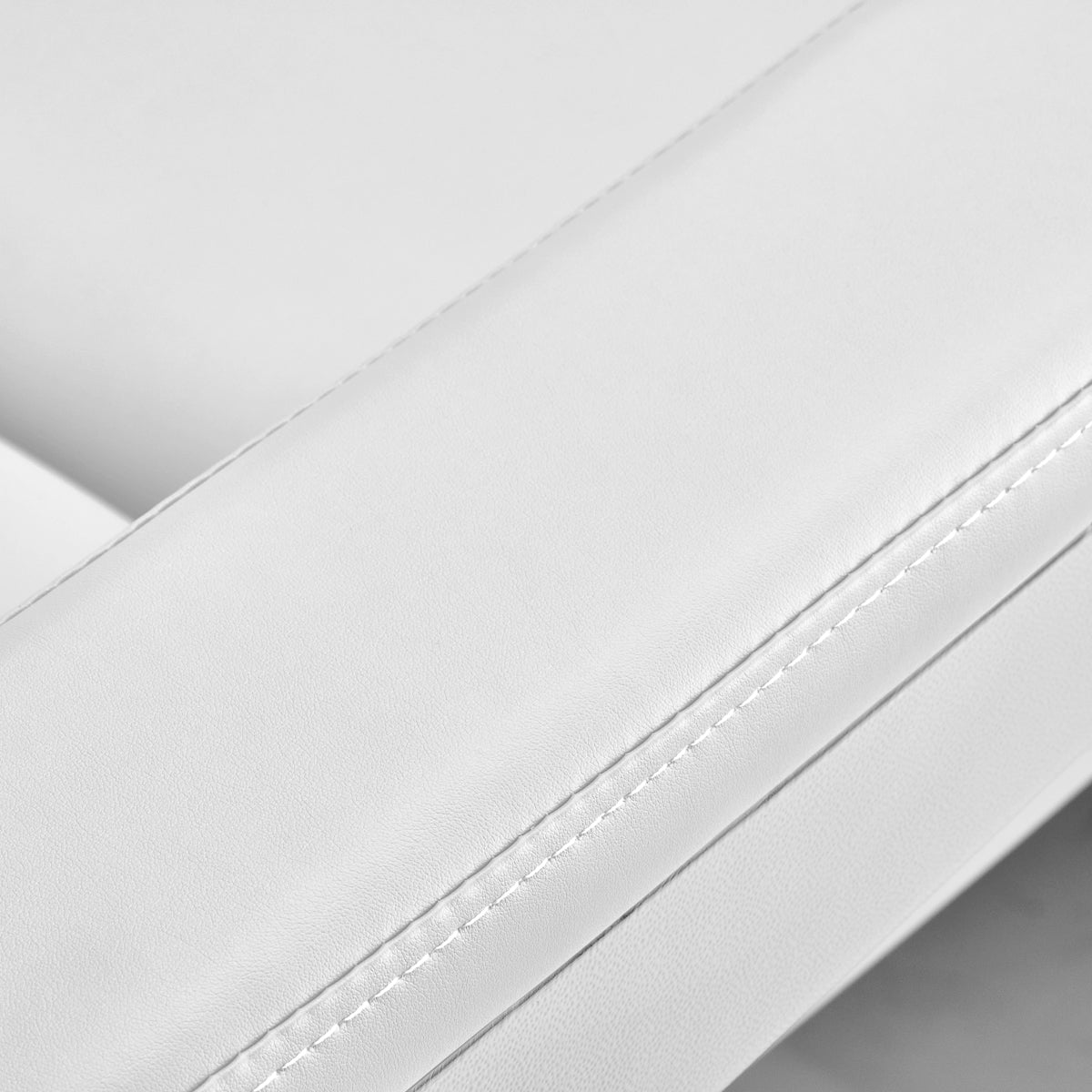 Kėdė užpildyta tinkamo kietumo putomis ir aptraukta malonia liesti imitacine oda baltų atspalvių. Dėl lengvai valomo ir pasirinktiems dezinfekantams atsparaus medžiagos naudojimo įranga yra patogi naudoti, atspari drėgmei ir lengvai valoma. Tvirtas pagrindas, pagamintas iš patvarios baltos medžiagos, užtikrina stabilumą procedūrų metu. Tinkamai profiliuoti kraštai suteikia kėdei stilingą išvaizdą ir padaro sėdimąją dalį ergonomišką.
