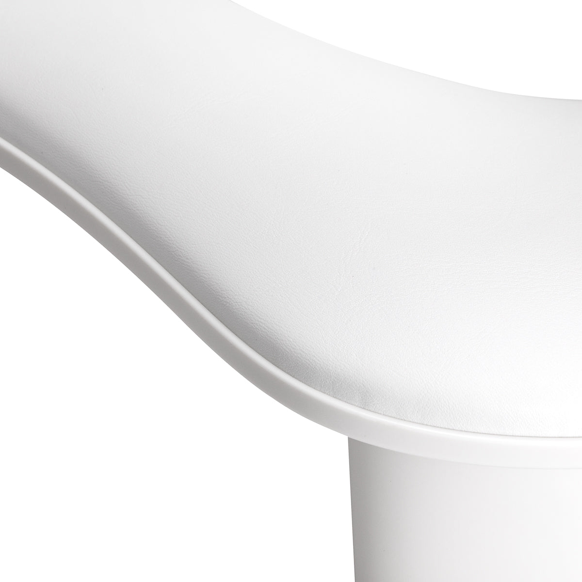 Momo Croissant atramos stovas pagamintas iš aukštos kokybės medžiagų, kurios užtikrina jo patvarumą ir lengvą valymą. Minkšta pagalvėlė, aptraukta sintetiniu odos sluoksniu, garantuoja klientams visišką komfortą procedūros metu, o tvirtas plastikinis rėmas padidina konstrukcijos patvarumą. Be to, silikoniniai elementai ant kojų neleidžia stovui slysti ir apsaugo viršų nuo įbrėžimų, užtikrindami stabilumą.
