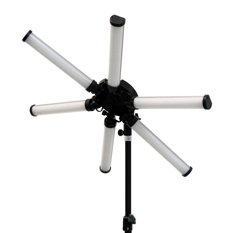 Lempa 6 LIGHT Small: Kompaktiška, galinga studijinė LED lempa su šešiais reguliuojamais skydeliais, leidžiančiais visiškai valdyti apšvietimą.