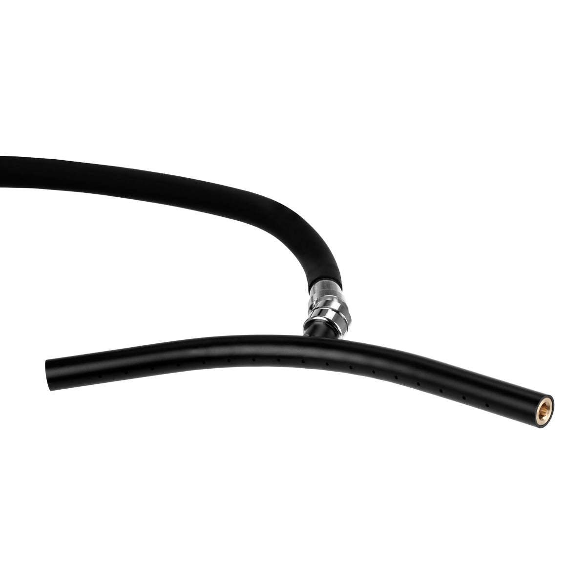 Maišytuvas yra aprūpintas dviem rankiniais dušais, suteikiančiais naudojimo universalumą. Klasikinis dušo galvutė idealiai tinka standartiniam plaukų plovimui, užtikrinant tikslų vandens srautą. Tuo tarpu lietaus dušas siūlo plačią, tolygią srovę, kuri švelniai, bet veiksmingai nuplauna plaukus, užtikrindama kliento komfortą plovimo metu.