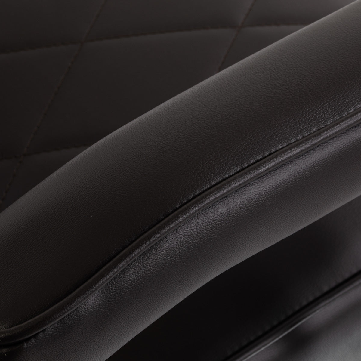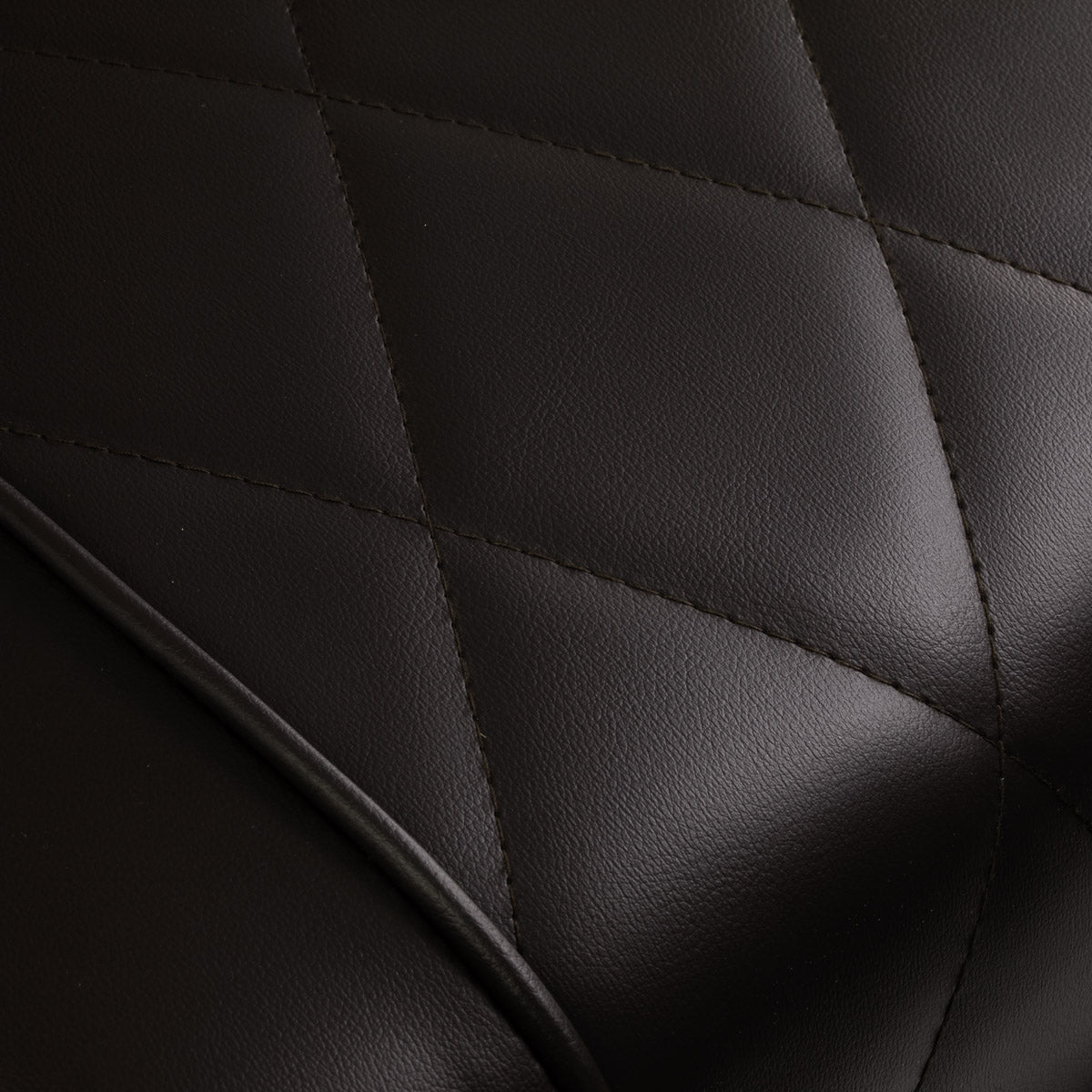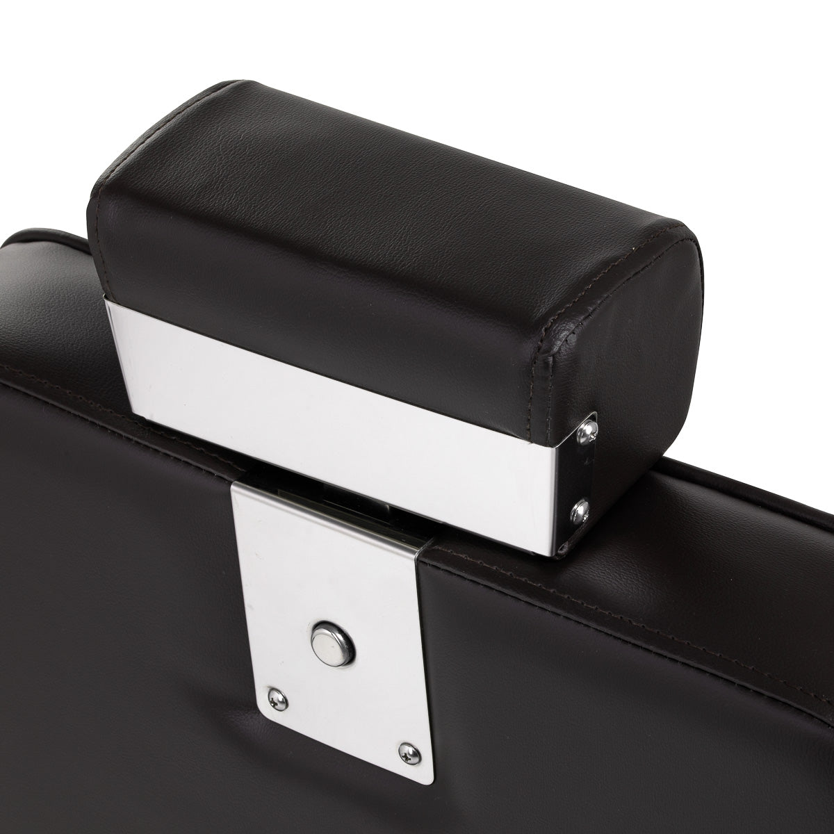 Kėdės tvirta apvali pagrindo konstrukcija užtikrina stabilumą ir puikų vartotojo komfortą. Sėdynės užpildas, pagamintas iš deformacijai atsparios putos, ir apmušalai iš minkšto liesti sintetinio odos su matinio paviršiaus apdaila užtikrina ilgalaikį patvarumą ir komfortą ilgalaikiam naudojimui. Stilingas siuvimas ant apmušalų suteikia charakterį, primenantį automobilių dizaino įkvėpimus, kurie pabrėžia jos elegantišką išvaizdą. Ši savybė taip pat daro kėdę atsparią drėgmei, patvarią ir lengvai valomą. Rudos spalvos apmušalai suteikia kėdei unikalų charakterį, o jos minimalistinis stilius leidžia sklandžiai derėti su bet kurios kirpyklos interjeru.