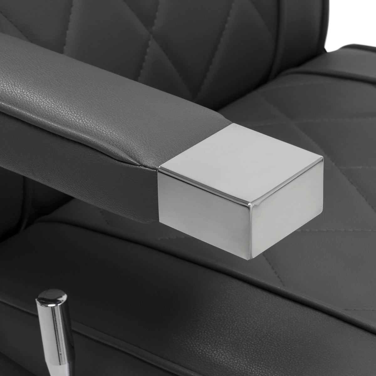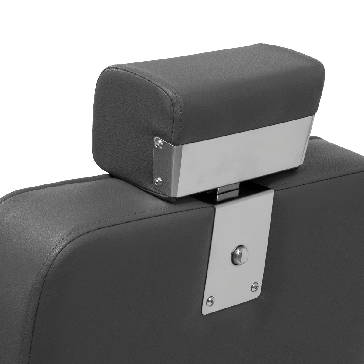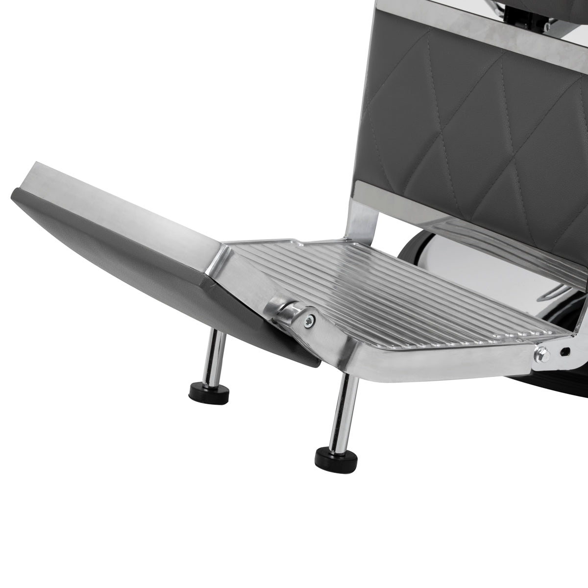 Kėdės tvirta apvali pagrindo konstrukcija užtikrina stabilumą ir puikų vartotojo komfortą. Sėdynės užpildas, pagamintas iš deformacijai atsparios putos, ir apmušalai iš minkšto liesti sintetinio odos su matinio paviršiaus užtikrina ilgalaikį patvarumą ir komfortą ilgalaikiam naudojimui. Stilingas siuvimas ant apmušalų suteikia charakterį, primenantį automobilių dizaino įkvėpimus, kurie pabrėžia jos elegantišką išvaizdą. Ši savybė taip pat daro kėdę atsparią drėgmei, patvarią ir lengvai valomą. Pilkos spalvos apmušalai suteikia kėdei unikalų charakterį, o jos minimalistinis stilius leidžia sklandžiai derėti su bet kokios kirpyklos interjeru.