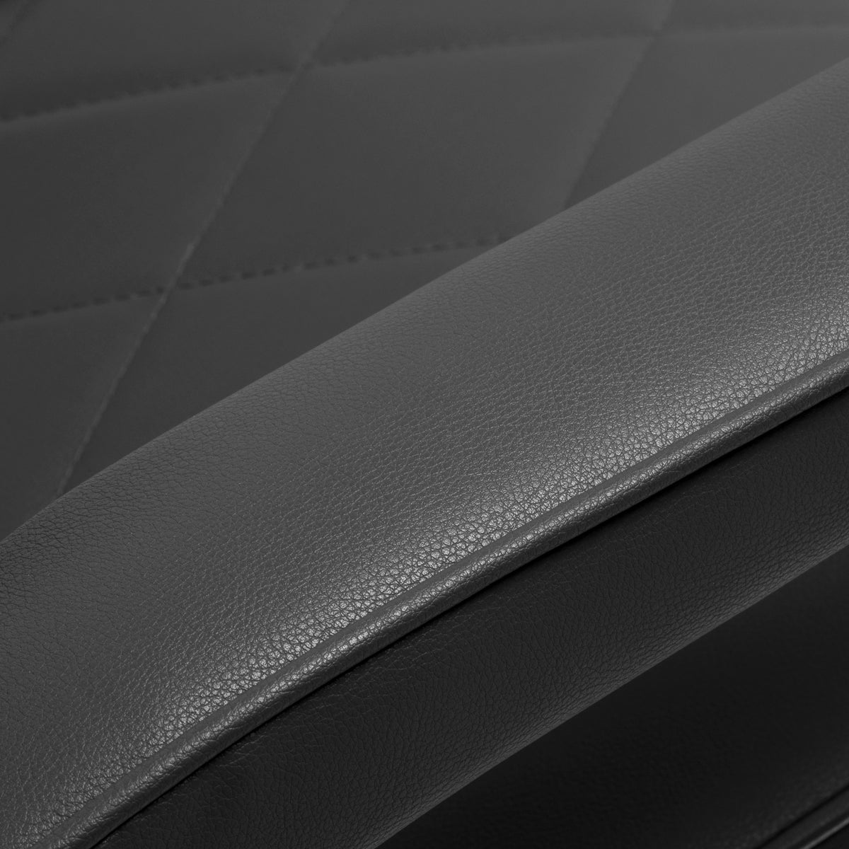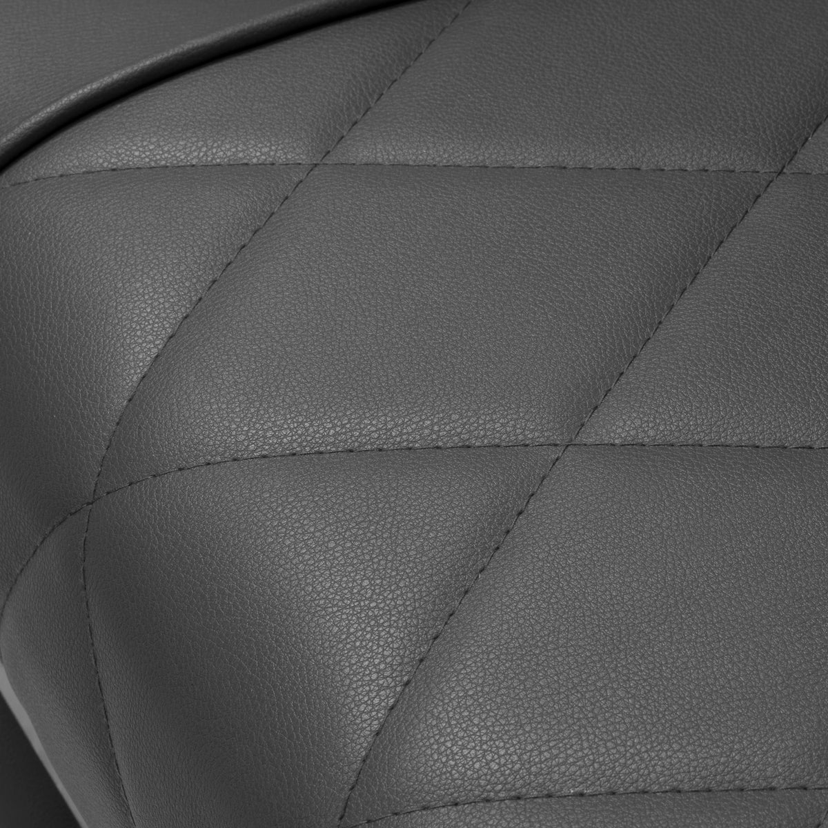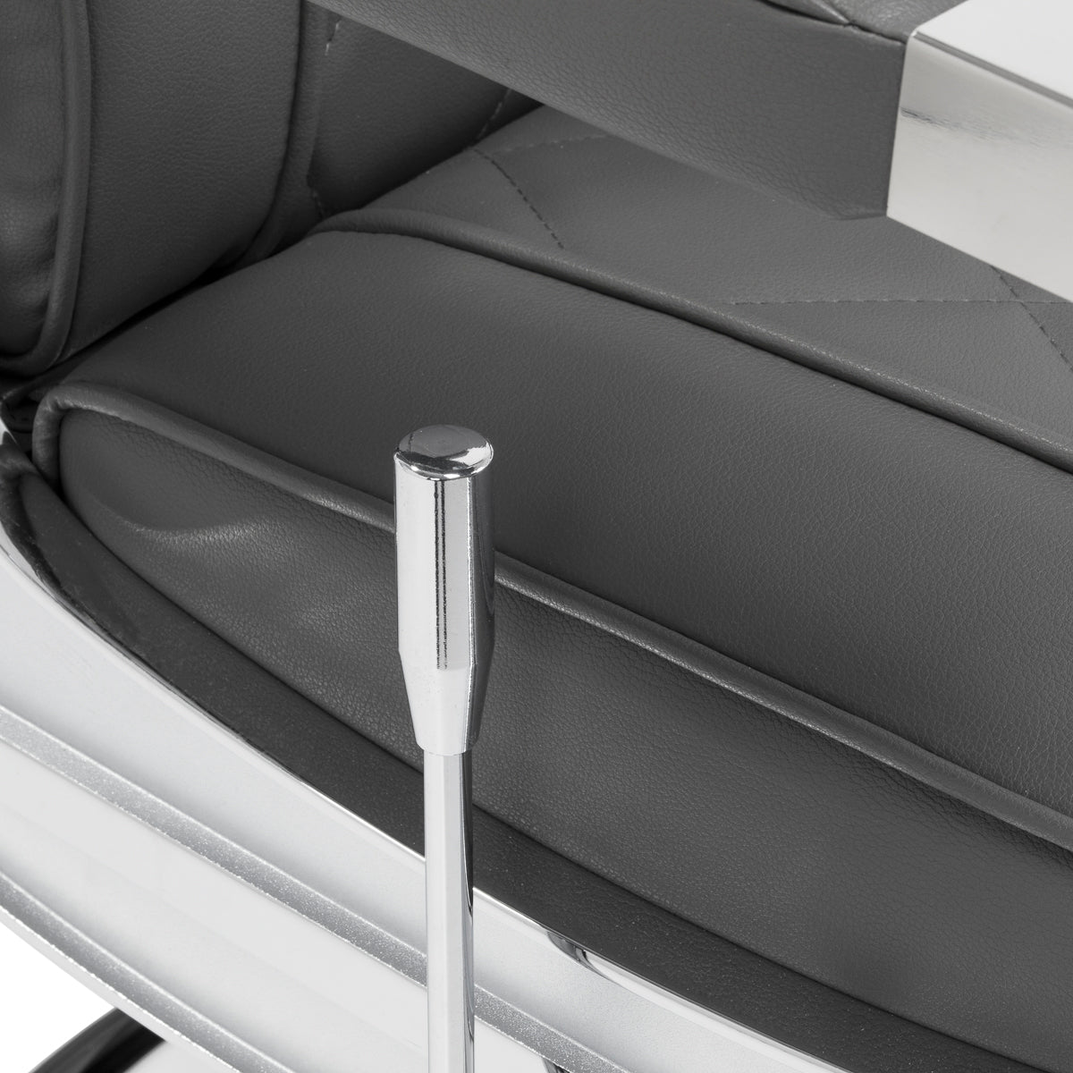 Kėdės tvirta apvali pagrindo konstrukcija užtikrina stabilumą ir puikų vartotojo komfortą. Sėdynės užpildas, pagamintas iš deformacijai atsparios putos, ir apmušalai iš minkšto liesti sintetinio odos su matinio paviršiaus užtikrina ilgalaikį patvarumą ir komfortą ilgalaikiam naudojimui. Stilingas siuvimas ant apmušalų suteikia charakterį, primenantį automobilių dizaino įkvėpimus, kurie pabrėžia jos elegantišką išvaizdą. Ši savybė taip pat daro kėdę atsparią drėgmei, patvarią ir lengvai valomą. Pilkos spalvos apmušalai suteikia kėdei unikalų charakterį, o jos minimalistinis stilius leidžia sklandžiai derėti su bet kokios kirpyklos interjeru.