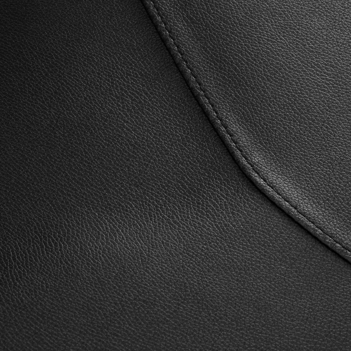 Tvirtas korpusas ir sintetinė oda juodos spalvos atspalviais užtikrina drėgmės atsparumą, tvirtumą ir ilgaamžiškumą. Apvalus pagrindas juodos spalvos atspalviais garantuoja stabilumą ir ilgaamžiškumą. Aptakus viršutinis atlošas prideda vizualaus lengvumo, pabrėždamas kėdės modernų charakterį, o kruopštūs detalės demonstruoja aukštą meistriškumo kokybę. Minimalistinė juoda spalva kartu su estetišku siuvimu leidžia kėdei sklandžiai derėti su įvairiais salono interjero stiliais, pridedant elegantišką ir modernų akcentą