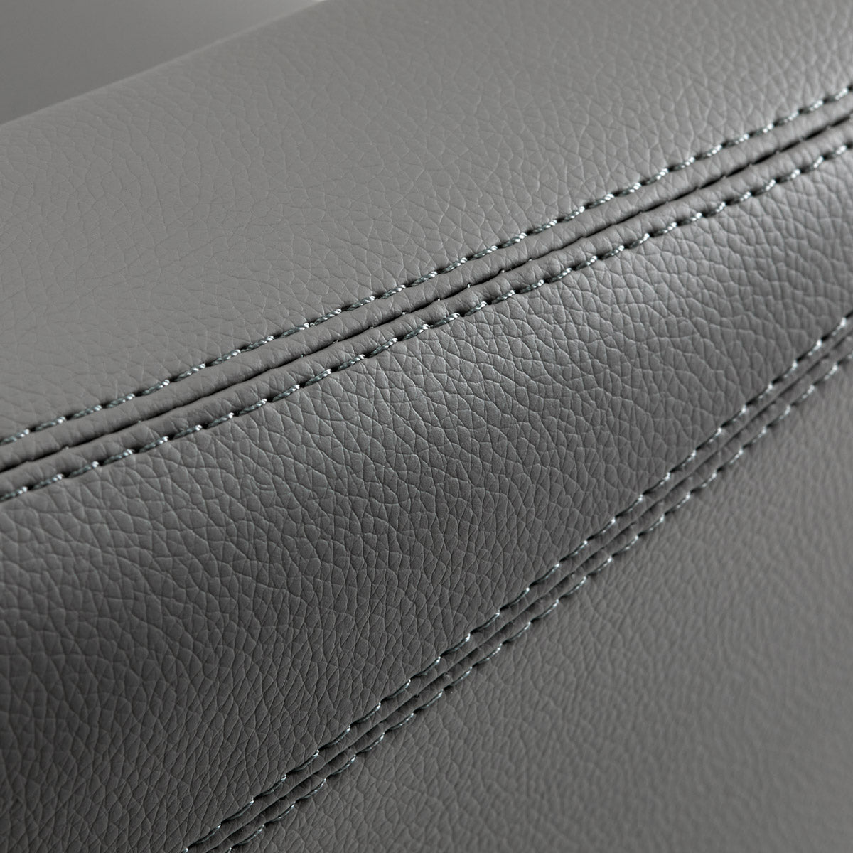 Kėdė užpildyta putomis, kurios yra patvarios ir nesideformuoja, užtikrinant patogų naudojimą ilgą laiką. Apmušalai pagaminti iš malonaus liesti dirbtinės odos su specifine struktūra. Dėl tokios medžiagos naudojimo įranga yra atspari drėgmei, patvari ir lengvai valoma. Pilkų atspalvių apdaila ir dekoratyviniai elementai auksinėmis spalvomis suteikia jai amžinos elegancijos išraišką. Jos išskirtinis klasikinis apdaila puikiai dera beveik bet kurioje erdvėje.