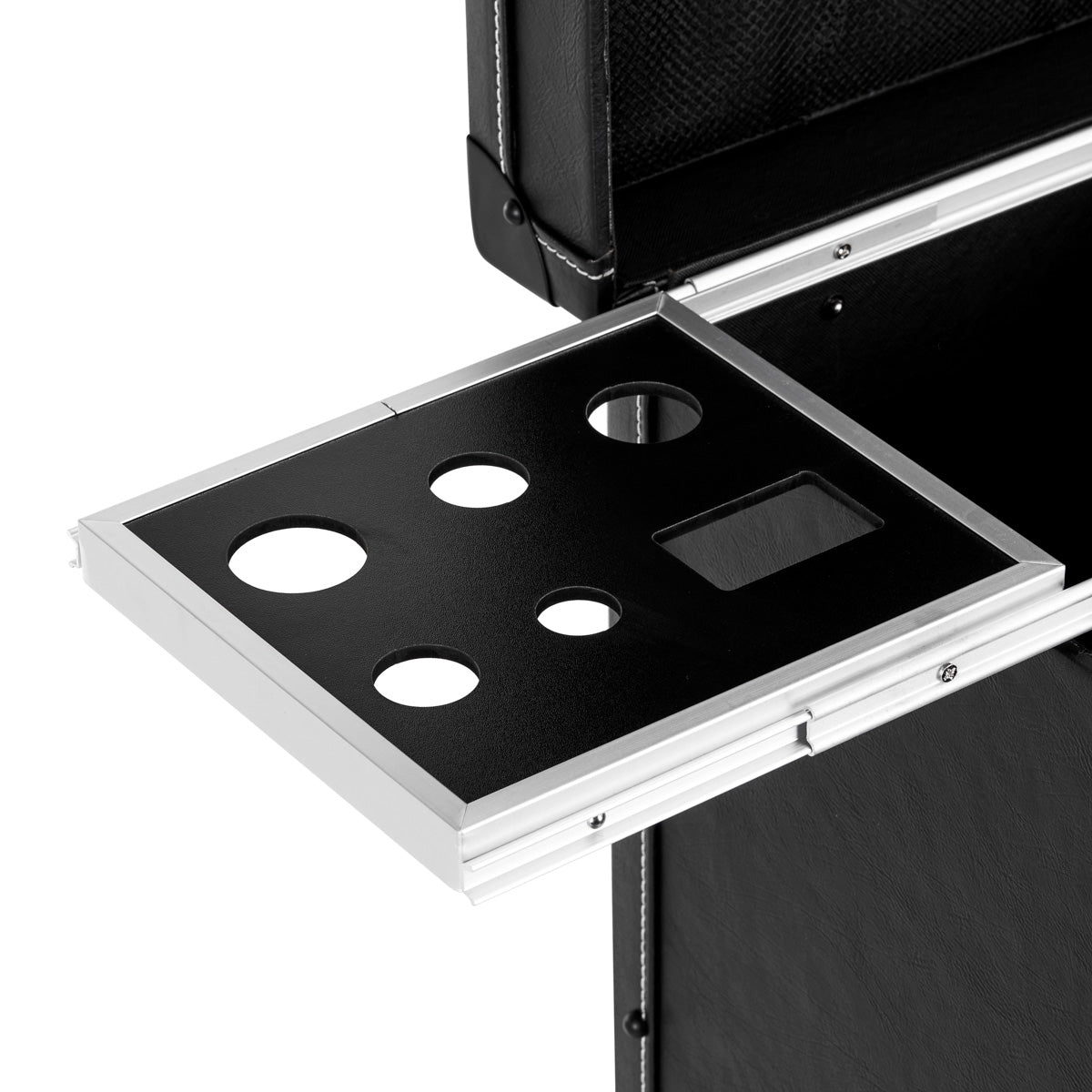 Talpus organizatorius yra aprūpintas daugybe skyrių. Ištraukiamos lentynos su rankenomis ir vietomis aksesuarams, stalčiai, skyreliai ir specialios kišenės kirpėjų produktams ir įrankiams laikyti palengvina darbo vietos tvarkymą ir žymiai pagerina erdvės organizavimą. Lengvas ratų surinkimas ir nuėmimas pagerina baldų mobilumą, todėl pagalbininką galima laisvai perkelti. Ištraukiama rankena, esanti pagalbininko gale, leidžia lengvai transportuoti baldus.