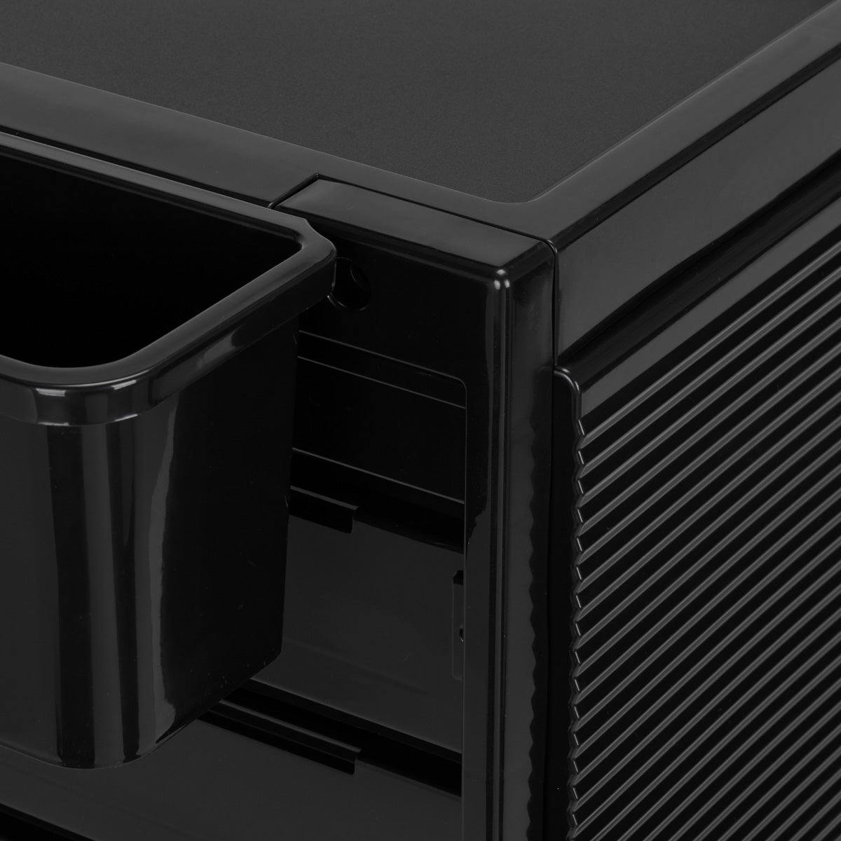 Paprastas pagalbininko stilius tinka bet kokiam interjerui. Pagamintas iš lengvai valomo, patvaraus materialo, šis juodos spalvos baldas žymiai pagerins darbą bet kuriame grožio salone. Guminiai ratukai suteikia mobilumą, leidžiantį jį laisvai ir sklandžiai judinti pagal poreikį – tiek procedūrų metu prie kirpėjo kėdės, tiek padedant į šalį po paslaugos. Juos taip pat galima lengvai nuimti, jei reikia. Šis pagalbininkas bus ypač naudingas tiems, kurie vertina funkcionalumą.
