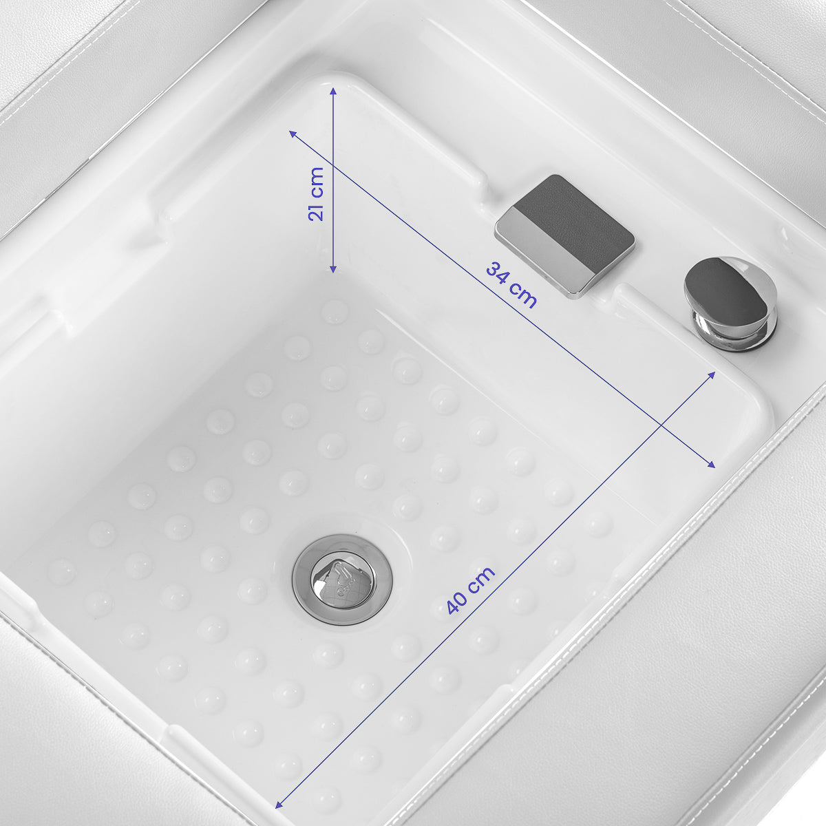 Gilus keraminis dubuo balto atspalvio efektyviai sumažina vandens ir procedūrų produktų purslų sklaidą, užtikrindamas švarą ir darbo komfortą. Pagamintas iš patvarios medžiagos, dubuo yra atsparus pageltimui, įbrėžimams ir pažeidimams, o jo lygi paviršius yra itin lengvai valomas. Išskirtinis profilis ne tik palengvina prieigą paslaugos teikėjui, bet ir suteikia plovimo įrenginiui elegantišką ir modernią išvaizdą. Estetikos ir funkcionalumo derinys kelia bet kurios profesionalios erdvės standartą.
