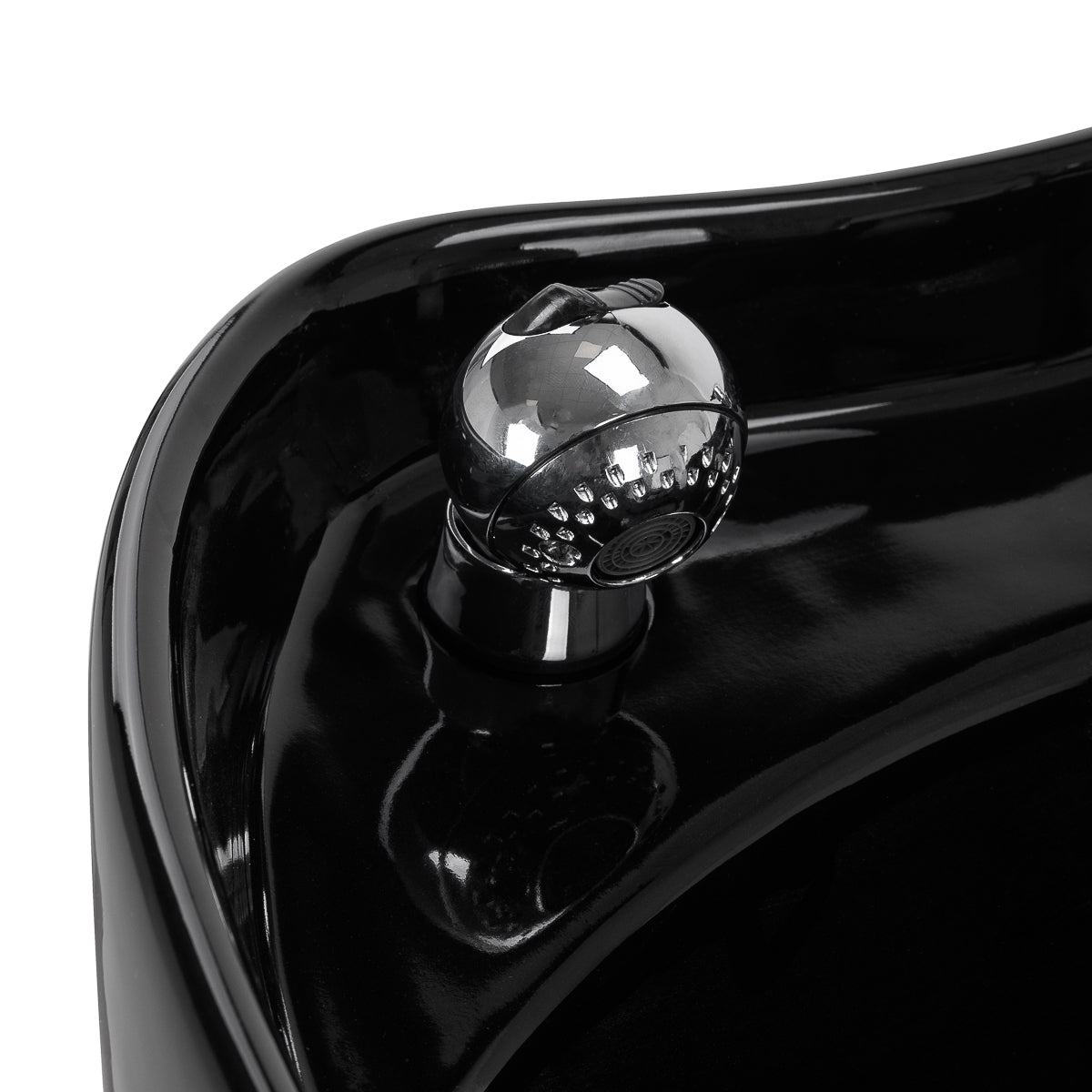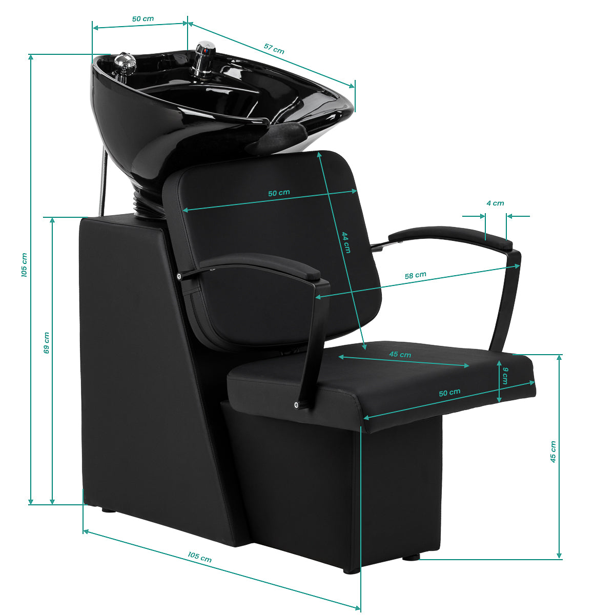 Kruopščiai parinktas juodos keramikos dubuo mažina vandens ir priemonių purslų sklaidą, kas leidžia patogiai ir efektyviai atlikti įvairias procedūras. Judantis dizainas leidžia tiksliai reguliuoti dubens kampą pagal individualius vartotojo poreikius. Aukštos kokybės keramika ypač atspari, nesideformuoja ir nesibraižo, taip pat lengvai valoma. Ergonomiškai suformuotas apykaklės kraštas suteikia stabilų palaikymą ir komfortą plaunant plaukus, o patogi plastikinė danga pašalina nemalonų šalčio pojūtį nuo keraminio paviršiaus.