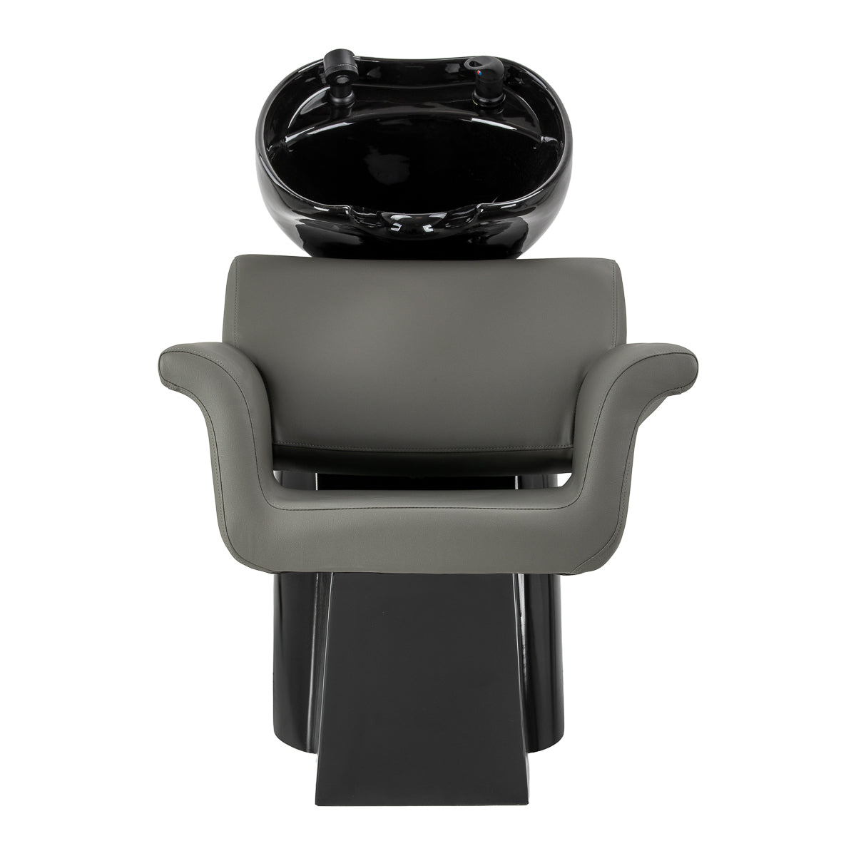Kėdė derina modernią, minimalistinę formą su aukštu komforto lygiu. Išoriniai, charakteringai išlenkti porankiai suteikia jai elegantišką charakterį, tuo pačiu palaikydami patogią ir natūralią kliento padėtį. Atlošas, turintis optimalų nuolydžio kampą, skatina taisyklingą laikyseną ir atsipalaidavimą procedūrų metu. Naudojant patvarias, drėgmei atsparias medžiagas, baldus lengva prižiūrėti ir užtikrinama, kad jie ilgai išlaikytų estetinį patrauklumą. Komplektuojama su visais reikalingais priedais – maišytuvu, dušo galvute ir specialiais žarnelėmis – užtikrinama, kad vienetas yra pilnai paruoštas naudoti. Universalus dizainas leidžia modeliui puikiai derėti tiek moderniuose, tiek klasikiniuose interjeruose, pabrėžiant profesionalų salono charakterį.