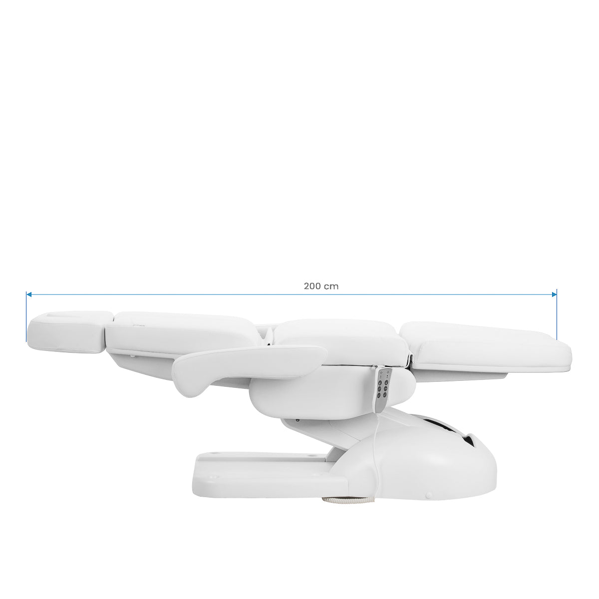 Azzurro Lux elektrinis kosmetinis fotelis yra aprūpintas 3 aktuatoriais, valdomais laidiniu nuotolinio valdymo pultu, kuris leidžia sklandžiai ir tiksliai reguliuoti atskirus elementus. Jis išsiskiria stabilumu ir universalumu, todėl yra idealus grožio, podiatrijos ir estetinės medicinos kabinetams. Intuityvus valdymas ir platus reguliavimo diapazonas leidžia lengvai pritaikyti fotelį tiek kliento, tiek specialisto poreikiams.