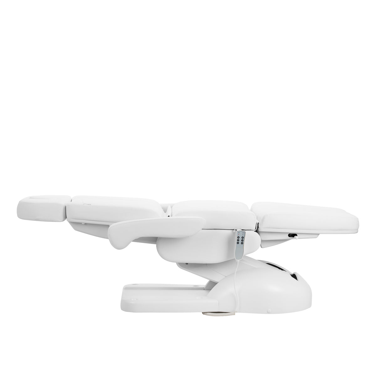 Azzurro Lux elektrinė kosmetinė kėdė yra modernus sprendimas, sukurtas atsižvelgiant į reiklius profesionalus. Naudojant tris laidiniu valdomus aktuatorius, garantuojamas tikslus ir be trikdžių individualių kėdės dalių reguliavimas. Kėdė išsiskiria dideliu stabilumu ir universalumu, todėl idealiai tinka naudoti kosmetikos, podiatrijos ir estetinės medicinos klinikose. Intuityvus valdymas ir platus reguliavimo diapazonas leidžia patogiai pritaikyti kėdę tiek kliento, tiek specialisto poreikiams.