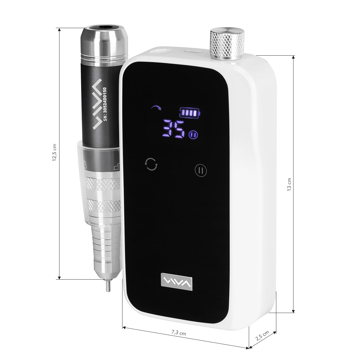 Praktiška VIVA 305 bevielė nagų freza yra kompaktiškas įrenginys, puikiai tinkantis mobiliems nagų stilistams, leidžiantis patogiai dirbti bet kur. Ji labai palengvina ankstesnių nagų dizainų likučių pašalinimą ir gerina nagų paruošimą tolimesnėms procedūroms. Leidžia patogiai dirbti iki 10 valandų vienu įkrovimu.