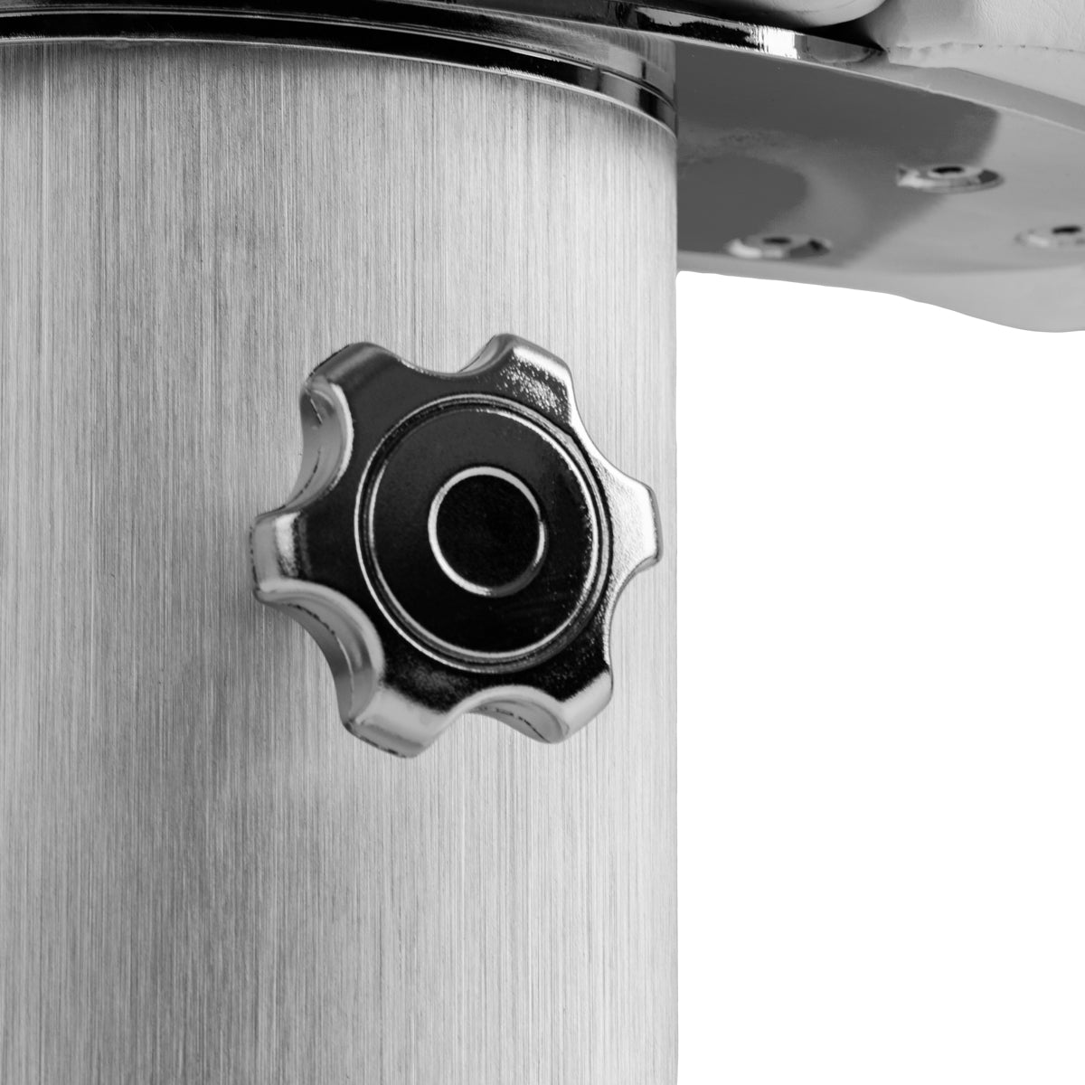 Reguliuojamas vežimėlis su kojų atrama leidžia pritaikyti padėtį tiek kliento, tiek specialisto poreikiams. Rankinis aukščio reguliavimas iki 20 cm, drėgmei atspari sintetinė oda ir stabilūs guminiai ratukai su stabdžiais užtikrina patogumą, mobilumą ir gerą darbo vietos tvarką.