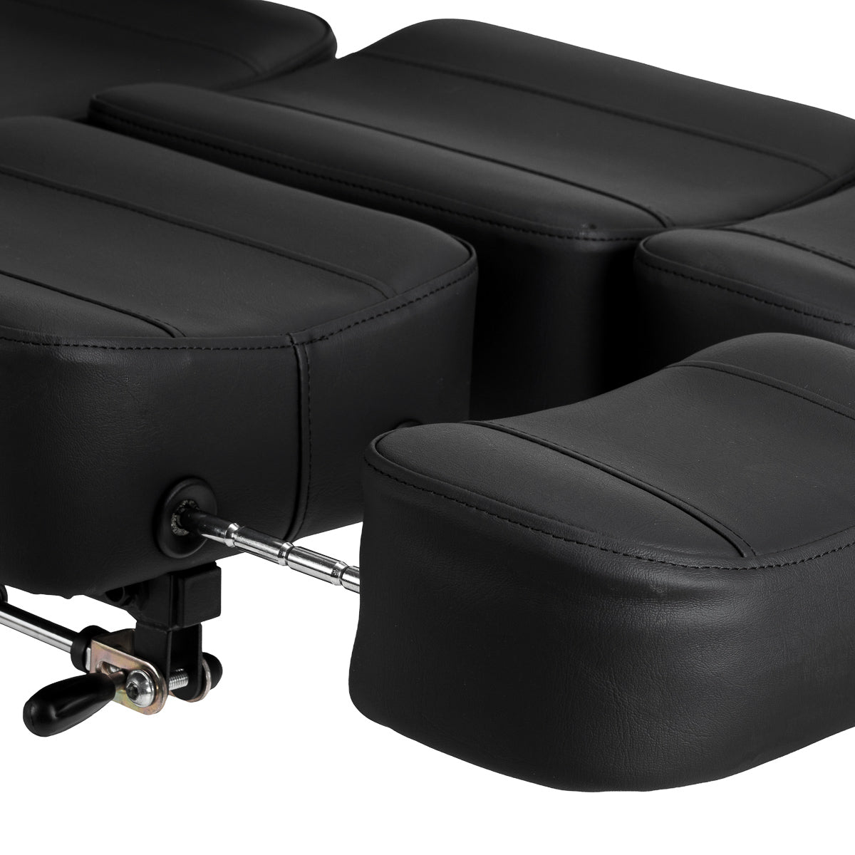 Viso sukimosi mechanizmas su užrakinimo funkcija suteikia išskirtinį funkcionalumą, palengvindamas lengvą prieigą prie kliento iš visų pusių ir gerindamas darbą net ir ankštose erdvėse. Kėdės dizainas leidžia ją atlošti į patogią padėtį, o galvos atramos anga, paslėpta po pagalvėle, suteikia tinkamą atramą ir patogumą atliekant procedūras įvairiose padėtyse. Papildomas patogumas – kojų atrama, leidžianti patogiai atsisėsti, o jos ilgio reguliavimas leidžia pritaikyti ją skirtingo ūgio naudotojams.