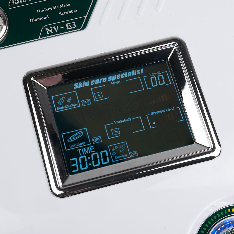Įrenginys atlieka efektyvų deimantinį mikrodermabrazijos procedūrą, kavitaicinį pilingą bei beadatinę mezoterapiją.