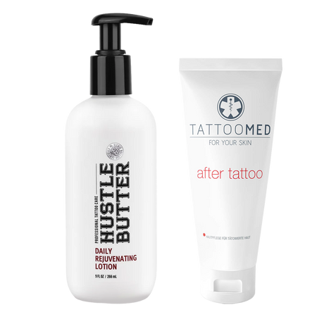 - Priežiūros Kremas ir Sviestai: Mūsų asortimente yra Swiss Color Grazia Aftercare Cream tiek 5ml, tiek 250ml dydžių, puikiai tinkantis nuraminti ir maitinti odą po procedūros. Taip pat išbandykite Inkeeze Vegan Tattoo Ointment ir Hustle Butter variantus kasdienei odos atgaivinimui ir apsaugai.