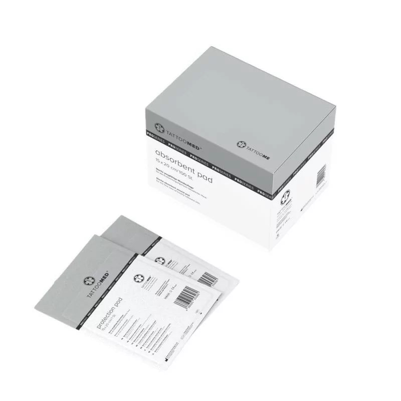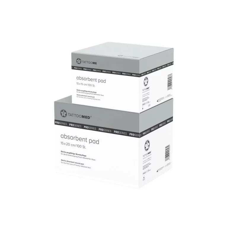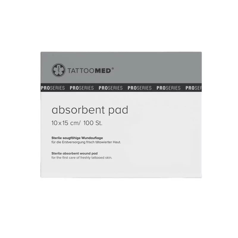 TattooMed Absorbent Pad yra profesionali, sterili žaizdų tvarstis, skirtas svarbiai pradiniam šviežiai tatuiruotos odos priežiūrai. Galima įsigyti dydžių 10x15cm arba 15x20cm, kiekviename pakelyje yra 100 labai sugeriančių pagalvėlių, todėl tai idealiai tinka studijoms ir požiūros rutinoms.