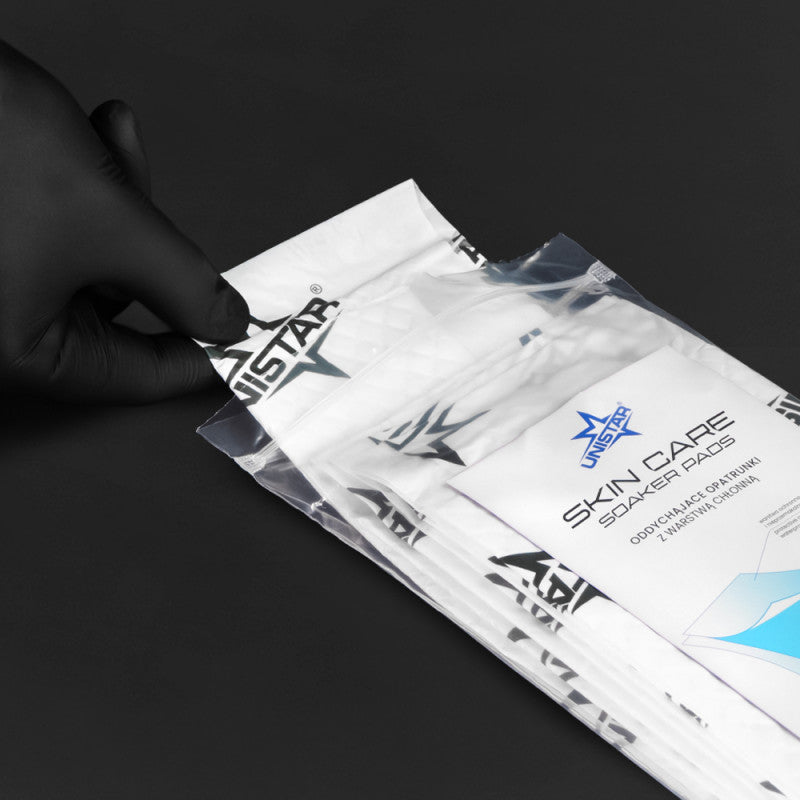 Unistar Skin Care Soaker Pads yra profesionalios kvėpuojančios pagalvėlės, skirtos tatuiruočių gijimui. Trijų sluoksnių struktūra užtikrina maksimalų sugeriamumą, higieną ir komfortą—apsaugodama tatuiruotes nuo išorinių veiksnių ir sukurdama idealias sąlygas tinkamam gijimui.