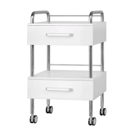 Mūsų kosmetikos ir salonų vežimėliai yra aprūpinti stalčiais, lentynomis ir skyreliais, leidžiančiais laikyti visus įrankius, priedus ir produktus tvarkingai ir po ranka. Ant sklandžiai riedančių ratukų sumontuoti vežimėliai lengvai perstumdomi tarp kambarių ar procedūrų zonų, užtikrinant sklandų darbo procesą ir patogumą specialistams.