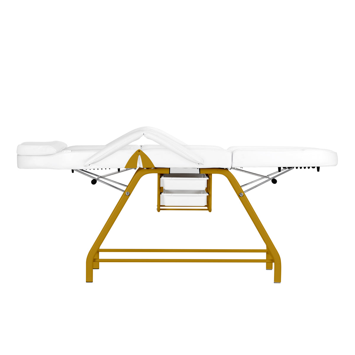 Balta kosmetologinė kėdė 557G su talpomis procedūrų reikmenims