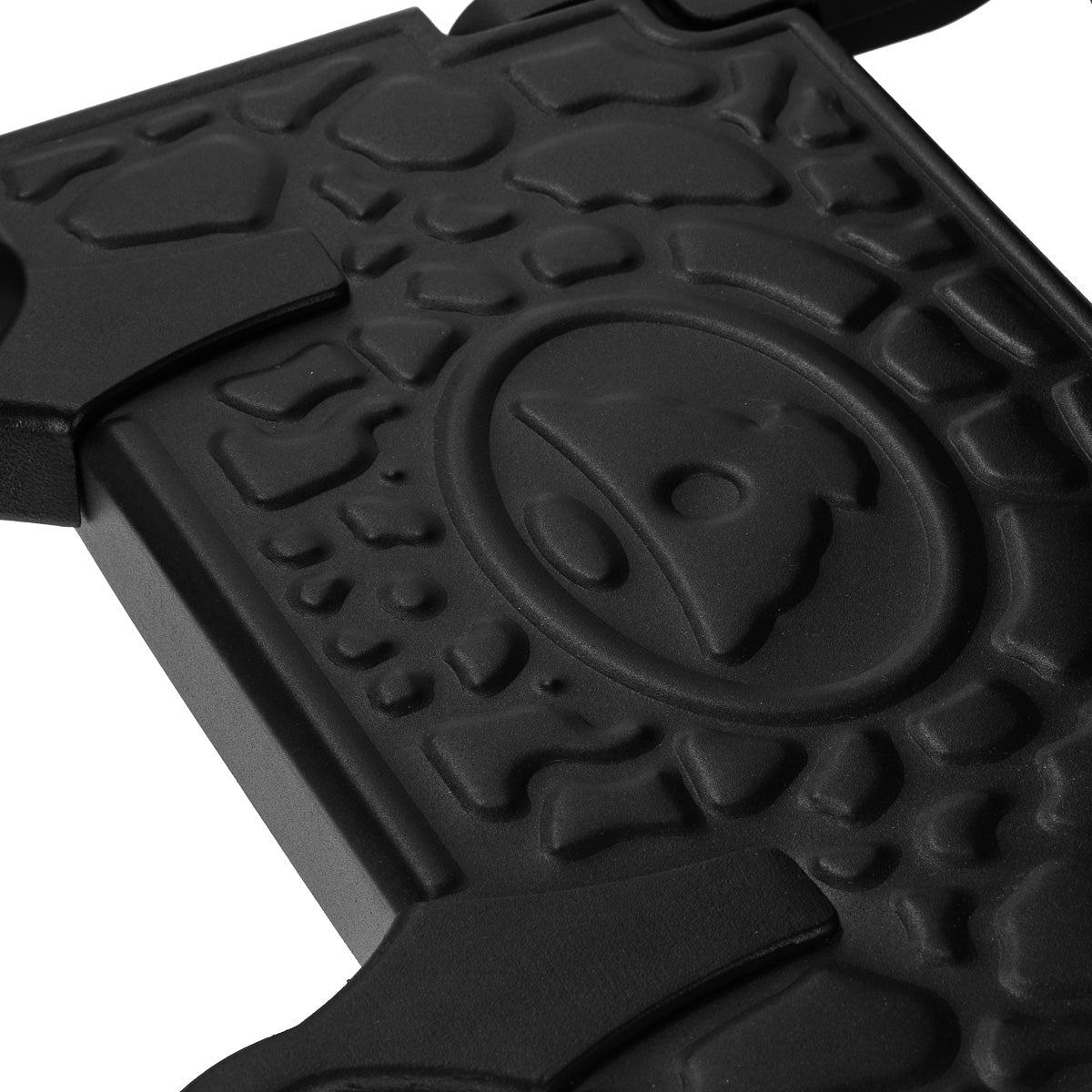Stipri pagrindo konstrukcija užtikrina stabilumą ir aukštą naudojimo komfortą. Sėdynės užpildas iš patvarios, deformacijai atsparios putos ir apmušalai iš maloniai liečiamo matinio sintetinio odos užtikrina ilgaamžiškumą ir patogų baldų naudojimą. Naudotos medžiagos taip pat daro įrangą atsparią drėgmei, patvarią ir lengvai valomą. Juodos spalvos užvalkalas su siuvinėjimu ir dekoratyviniais mygtukais kartu su dekoruotu pakoju suteikia unikalų charakterį. Kėdė su išskirtiniu dizainu, primenančiu retro stilių, puikiai dera prie kirpyklų atmosferos, sustiprindama jų unikalų žavesį.