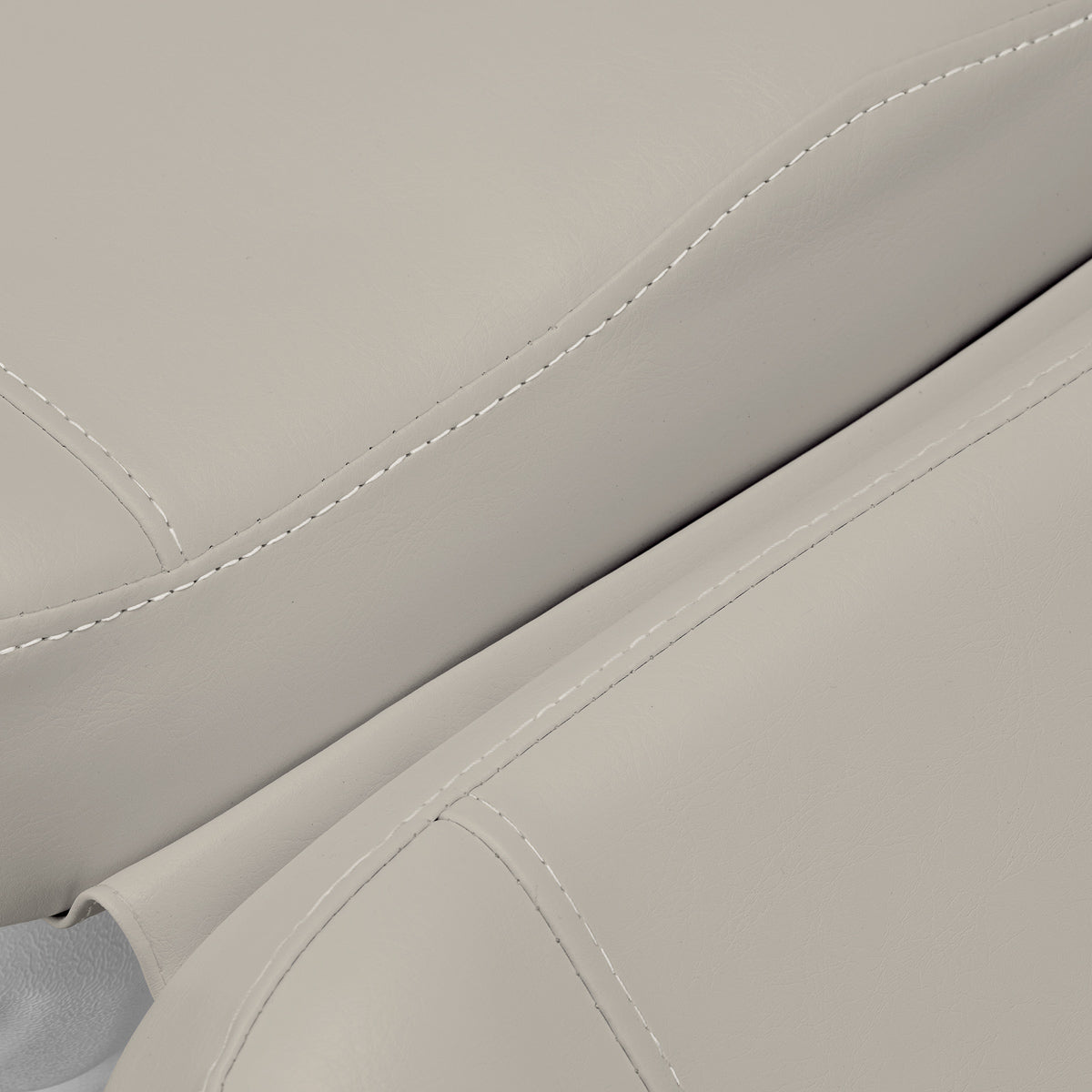 Kėdė užpildyta kontūruota putomis ir aptraukiama malonia liesti sintetika odos smėlio atspalviais. Naudota medžiaga daro įrangą lengvai valomą, taip pat atsparią drėgmei ir pasirinktoms dezinfekavimo priemonėms. Tvirtas pagrindas iš patvarios medžiagos baltos spalvos atspalviais užtikrina stabilumą procedūrų metu. Tinkamai profiliuoti kraštai suteikia kėdei stilingą išvaizdą ir daro sėdynę ergonomiška. Minimalistinis, paprastas dizainas ir klasikinės spalvos leidžia jai derėti prie bet kokio interjero.