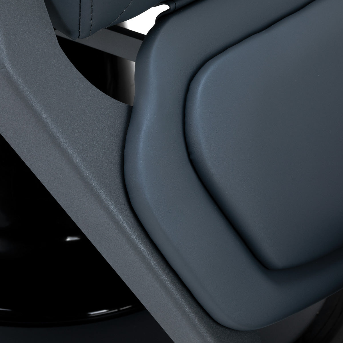 Ergonomiškas sėdynės dizainas ir atidžiai profiliuota atlošo forma užtikrina kliento komfortą net ir ilgesnių procedūrų metu. Apmušti porankiai, sumontuoti optimalioje aukštyje, leidžia teisingai padėti kliento rankas, užkertant kelią įtampai kaklo ir pečių srityje. Viso sukimosi mechanizmas didina darbo lankstumą ir leidžia lengvai reguliuoti kėdę bet kokioje padėtyje.