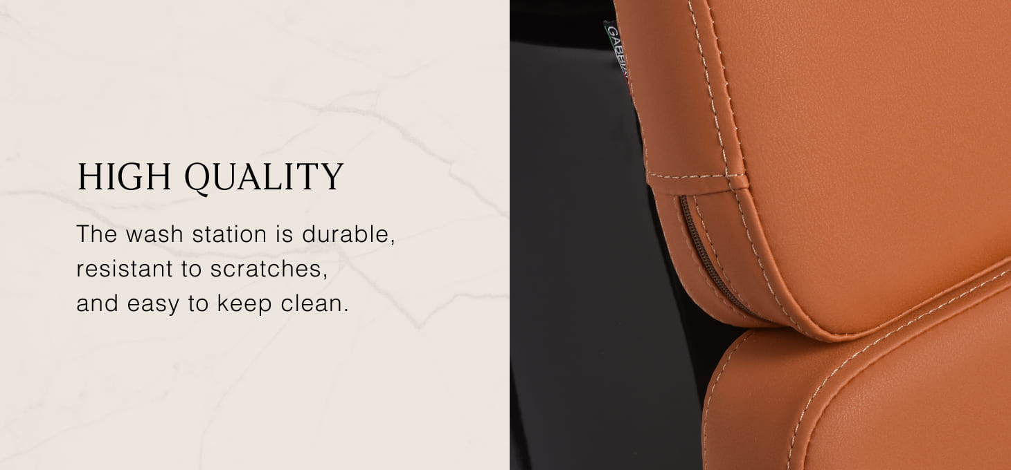 The practical hair wash unit is equipped with a mixer faucet, which provides easy access to hot and cold water. This makes it easier to adjust the temperature to the customer's individual preferences. A dedicated place to hang up the handset makes work easier, and the chrome-plated plug with a special strainer allows you to control the water flow and maintain high hygiene standards in the salon. The water connection has been placed inside the base, allowing the pipes to be easily hidden. A significant advantage of this model is the opening left between the backrest and the seat, which makes it easier to keep the living room clean by allowing you to easily sweep dirt from every nook and cranny of the chair. The hair wash unit has been designed in such a way as to ensure comfort during various treatments, ensuring proper back support. The combination of functionality and amenities makes working in a hairdressing salon even more comfortable.