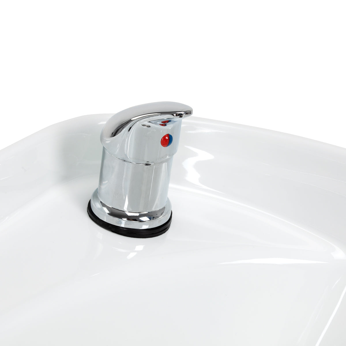 Keraminio praustuvo dubens gylis baltų atspalvių leidžia patogiai ir efektyviai atlikti platų kirpyklos paslaugų spektrą, užkertant kelią pernelyg dideliam vandens ir procedūrų produktų purslų sklaidymui. Naudota medžiaga daro praustuvą patvarų, atsparų išblukimui ir įbrėžimams, bei labai lengvai valomą. Tinkamai profilis apykaklė ir pasviręs atlošas suteikia atramą ir komfortą plaunant plaukus, o dėka patogaus juodų atspalvių plastikinio uždengimo, klientas nejus diskomforto dėl šaltos keraminės paviršiaus.