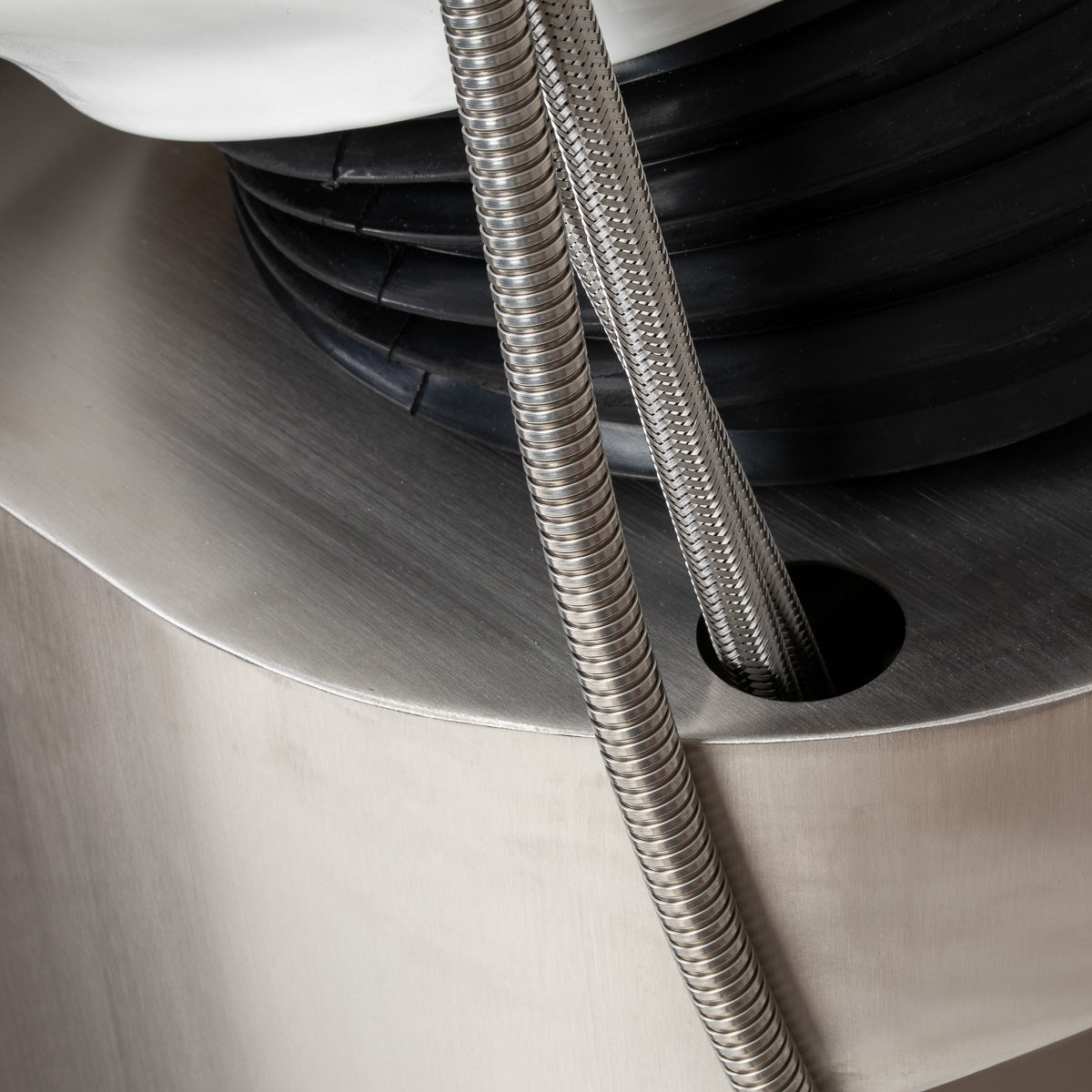 Plovimo įrenginys yra įrengtas maišytuvu, kuris suteikia nuolatinę karšto ir šalto vandens prieigą. Tai leidžia lengvai reguliuoti temperatūrą pagal kliento pageidavimus. Speciali vieta rankenėlei pakabinti palengvina darbą, o chromuotas kamštis su specialiu sieteliu leidžia kontroliuoti vandens srautą ir palaikyti aukštus higienos standartus salone. Vandens jungtis yra kolonos viduje po praustuvu, kas efektyviai slepia visas vamzdynus, o lengvai nuimamas skydelis suteikia patogią prieigą prireikus. Kėdė yra profiliuota, kad užtikrintų komfortą atliekant įvairias procedūras, o pakojis garantuoja puikią kojų atramą. Funkcionalumo ir patogumų derinys daro darbą kirpykloje dar patogesnį.