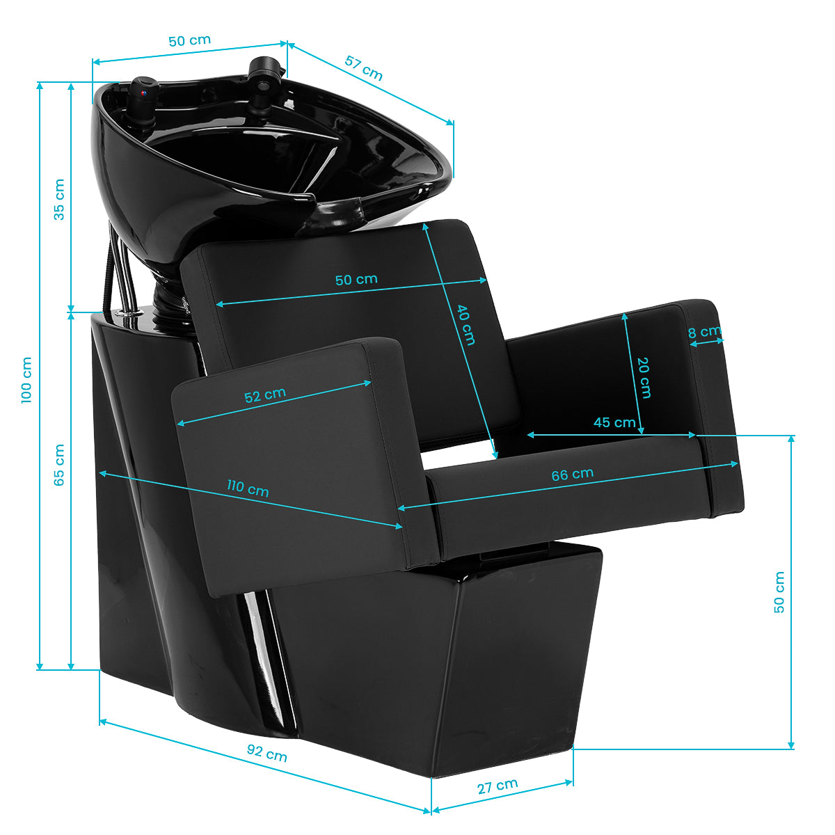 Gili keramikinė dubenė juodų atspalvių mažina vandens ir kosmetikos purslų sklaidą procedūrų metu. Reguliuojamas dubenėlio kampas leidžia tiksliai pritaikyti pagal kliento poreikius. Pagamintas iš tvirto mišinio, jis atsparus išblukimui, įbrėžimams ir cheminėms medžiagoms, o lygus paviršius palengvina valymą. Ergonomiškai suformuotas apykaklės kraštas suteikia patogią galvos atramą, o juodas plastikinis dangtelis pašalina šalčio pojūtį liečiantis prie keramikos.