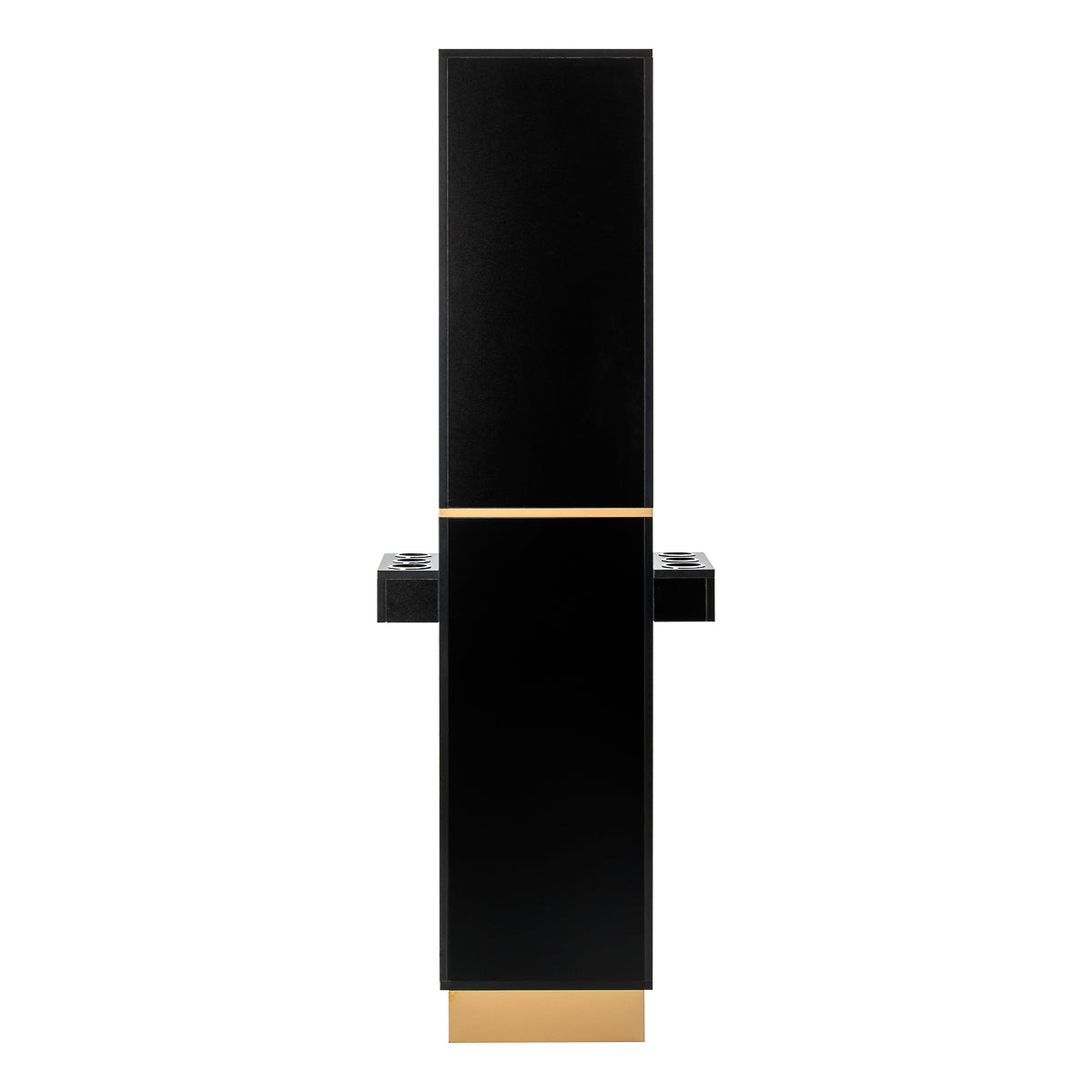Gabbiano Totem kirpyklos stotelė yra funkcionali įranga, sukurta atsižvelgiant į ergonomiką ir tvarkingą, organizuotą darbo vietą. Modelis pabrėžia profesionalų interjero charakterį ir padeda efektyviai organizuoti darbo vietą. Minimalistinė forma, baigta juodos spalvos atspalviais ir paauksuotais akcentais, suteikia elegantišką ir prabangų įvaizdį, kuris puikiai dera modernių kirpyklų ir barzdaskučių interjeruose.