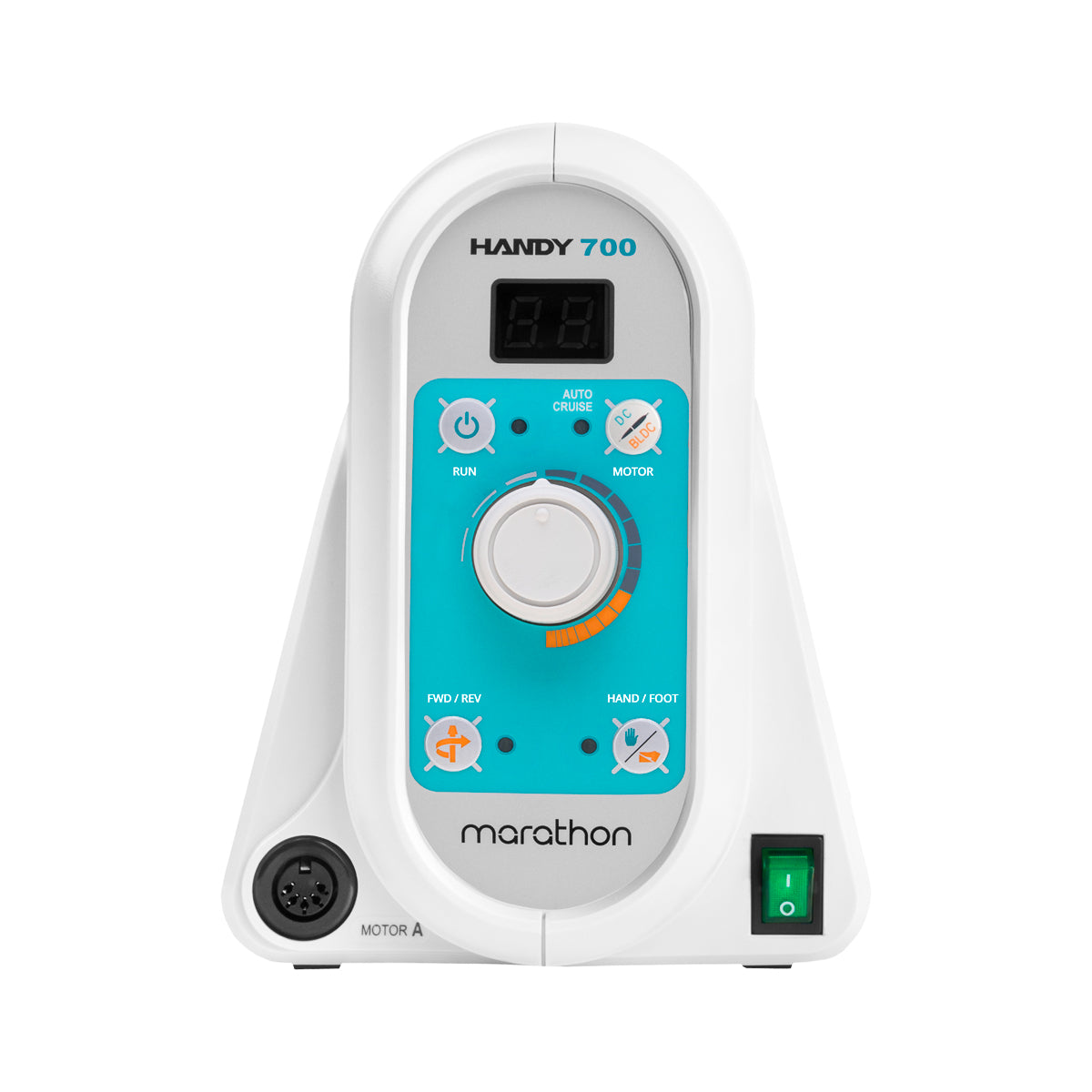Handy 700 protezinė nagų gręžimo mašina siūlo didelę 100W galią ir tylų veikimą. Ji užtikrina aukštą greitį iki 50 000 apsisukimų per minutę. Darbas su šia nagų gręžimo mašina yra itin patogus, nes mikromotore įmontuota triukšmo mažinimo sistema, sumažinanti triukšmą 20 % lyginant su įprastais modeliais. Mašinos valdymo dėžutė turi ergonomišką formą, praktišką rankeną transportavimui ir rankinio įrankio laikiklį.