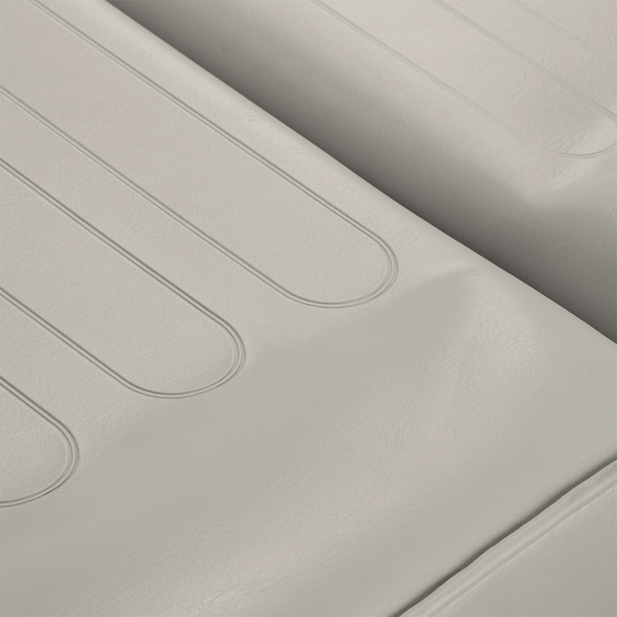 Kėdė užpildyta tinkamo kietumo putomis ir aptraukiama pusiau matinės imitacinės odos smėlio atspalviais. Dėl tokios medžiagos naudojimo įranga yra patogi naudoti, atspari drėgmei ir lengvai valoma. Tinkamai profiliuoti kraštai suteikia sėdynei ergonomišką formą. Tvirta konstrukcija garantuoja patvarumą ir stabilumą. Paprastas dizainas ir klasikinės spalvos leidžia jai derėti prie bet kokio interjero.