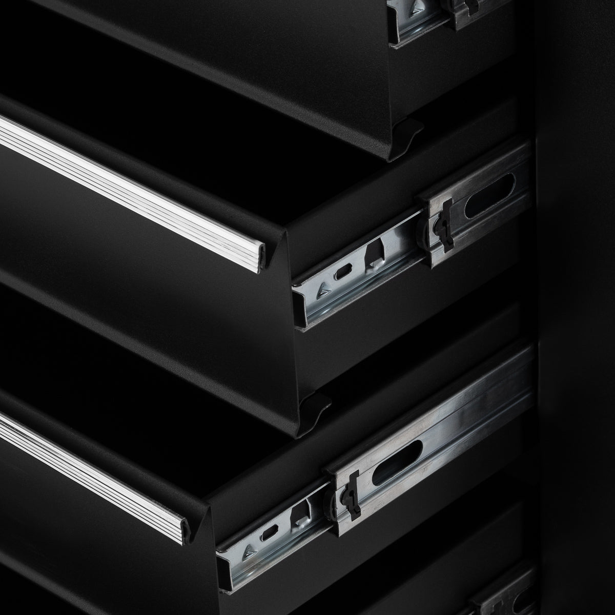 Modelis aprūpintas penkiais talpiais stalčiais, kurie suteikia pakankamai vietos reikalingiems įrankiams, higienos priemonėms ir vienkartiniams priedams. Gerai apgalvotas išdėstymas skatina tvarką ir tinkamą darbo vietos organizavimą. Raktinis užraktas neleidžia stalčiams būti ištrauktiems nekontroliuojamai ir leidžia saugoti jautresnę įrangą ar dokumentaciją.